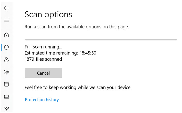 6.Η πλήρης σάρωση των Windows Defender θα ξεκινήσει.