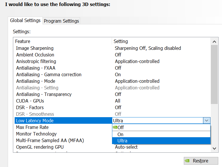 4. Κάτω από τοΠαγκόσμιες ρυθμίσειςκαρτέλα, ρυθμίστε τοΛειτουργία χαμηλής λανθάνουσας κατάστασηςναΥπερ