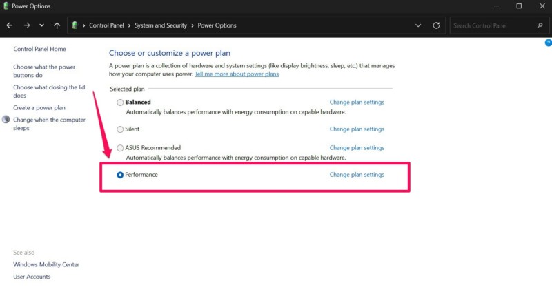 5.Τότε, εάν το τρέχον σχέδιο ισχύος σας έχει οριστείΙσορροπημένο, σιωπηλό ή οποιοδήποτε άλλο σχέδιο συντήρησης ενέργειας, κάντε κλικ στοΕκτέλεσηήΣχέδιο υψηλής απόδοσηςναΕνεργοποιήστε τοστη συσκευή σας.