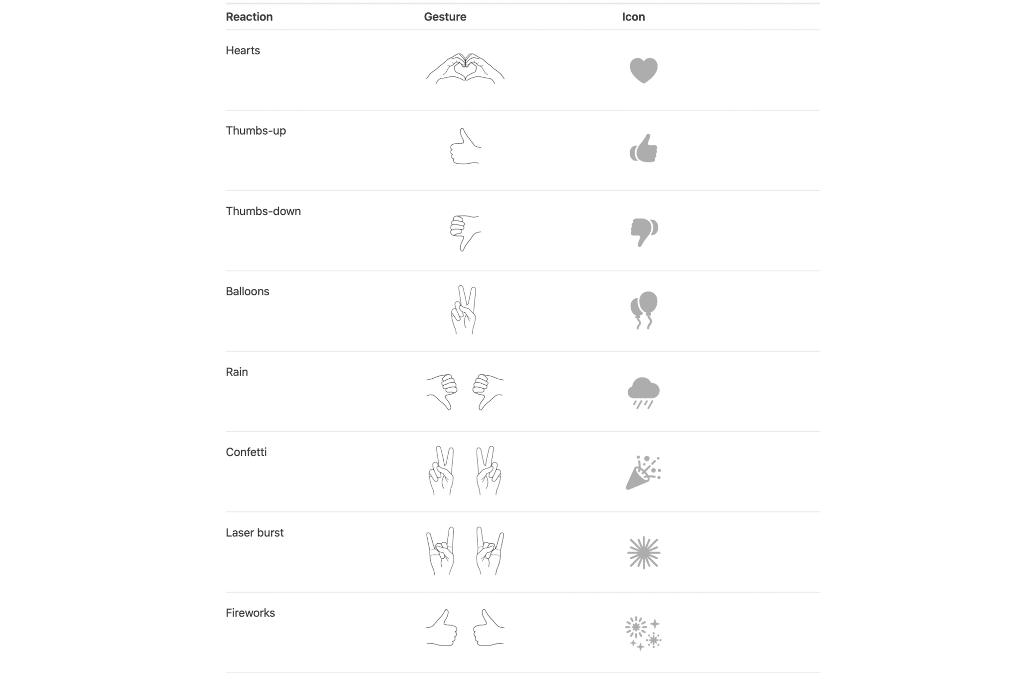 Η Apple καθόρισε συγκεκριμένες χειρονομίες για να ενεργοποιήσει τις αντιδράσεις FaceTime στο iPhone σας. Είναι πιθανό οι χειρονομίες που κάνετε να μην ταιριάζουν με τις απαιτούμενες χειρονομίες για να ενεργοποιήσετε την αντίδραση. Παρακάτω είναι η λίστα με 8 χειρονομίες που μπορείτε να κάνετε που θα ενεργοποιήσει μια αντίδραση FaceTime: