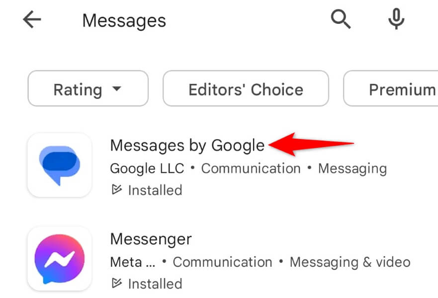 Εάν η εφαρμογή μηνυμάτων σας είναι ελαττωματική, δεν θα σας βοηθήσουν να επιλύσετε το πρόβλημά σας. Σε αυτή την περίπτωση, η καλύτερη λύση σας είναι να χρησιμοποιήσετε μια άλλη εφαρμογή ανταλλαγής μηνυμάτων στο τηλέφωνό σας. Υπάρχουν αρκετές εφαρμογές δωρεάν μηνυμάτων για να διαλέξετε από το Play Store της Google.