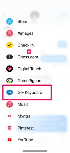Μετά την επανεκκίνηση της εφαρμογής μηνύματος στο iPhone σας, ανοίξτε οποιαδήποτε συνομιλία από τη λίστα και ελέγξτε εάν το πληκτρολόγιο GIF είναι διαθέσιμο στη λίστα εφαρμογών IMessage.