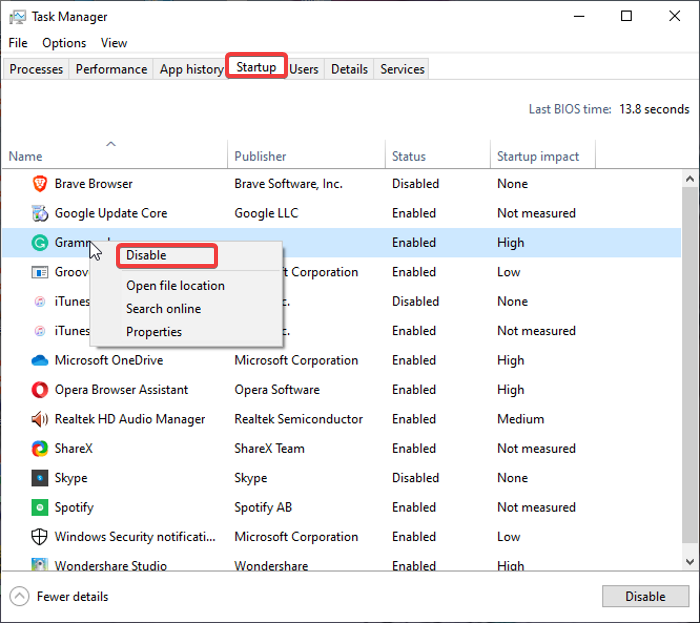 2.ΕπιλέγωΕκκίνησηΣτη σελίδα του Manager Manager και κάντε δεξί κλικ στο πρόγραμμα που θέλετε να απενεργοποιήσετε.