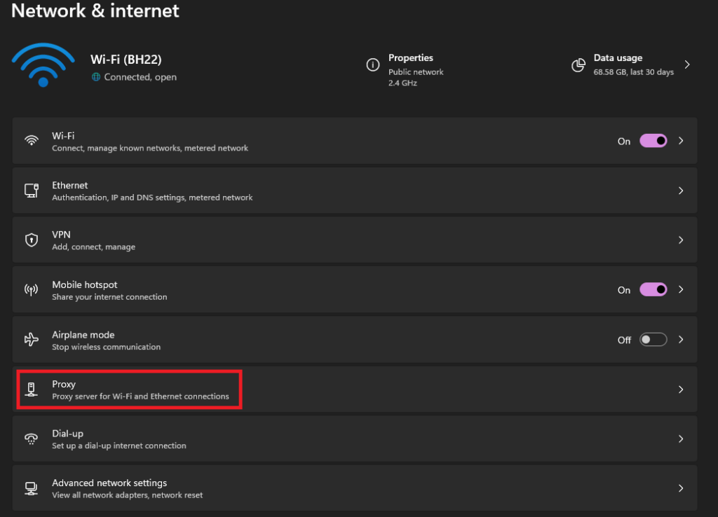 Μια λανθασμένη ρύθμιση διακομιστή μεσολάβησης μπορεί επίσης να είναι ο λόγος για τον οποίο το αρχείο Hosts δεν λειτουργεί στο σύστημά σας. Τώρα, για να αντιμετωπίσετε αυτό το ζήτημα, υπάρχουν δύο πράγματα που μπορείτε να κάνετε: χρησιμοποιήστε τις σωστές ρυθμίσεις πληρεξούσιου ή απενεργοποιήστε το πληρεξούσιο. Μπορείτε να βρείτε τις σωστές ρυθμίσεις διακομιστή μεσολάβησης για σχεδόν όλους τους διακομιστές στο Διαδίκτυο και αν θέλετε να απενεργοποιήσετε τον διακομιστή μεσολάβησης στον υπολογιστή σας, ακολουθήστε αυτά τα βήματα:
