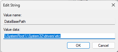 3.Κλικ στοDatabasepath,και κάτω από τοΑξίαδεδομέναΤμήμα, επικολλήστε τη διαδρομή τοποθεσίας του αρχείου Hosts.