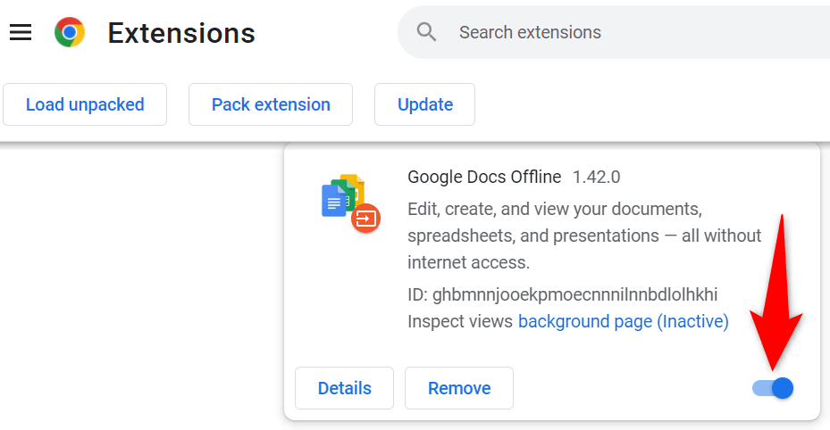 - Όταν βρείτε την επέκταση του ένοχου, αφαιρέστε αυτήν την επέκταση επιλέγονταςΑφαιρώστο Chrome'sΕπεκτάσειςσελίδα.