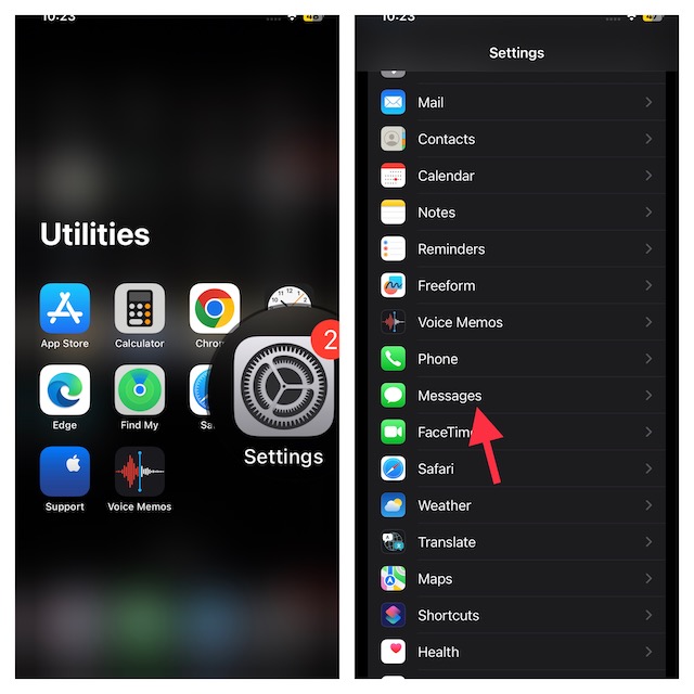 1.Για να το κάνετε αυτό, ξεκινήστε την εφαρμογή ρυθμίσεων στο iPhone ή το iPad σας. Μετά από αυτό, μετακινηθείτε προς τα κάτω και, στη συνέχεια, πατήστεΜηνύματα.