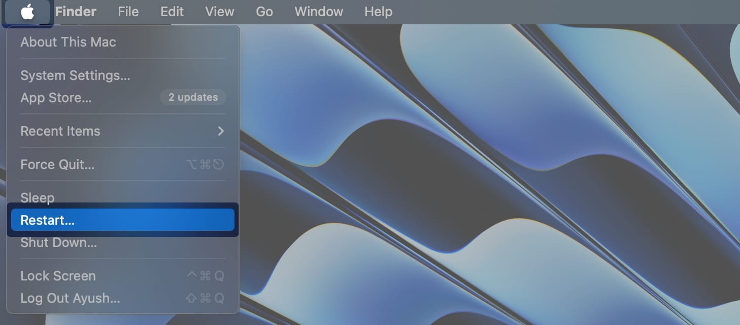 Για να επανεκκινήσετε το Mac σας, απλά κάντε κλικ στοΜενού Apple ()στην κορυφή της οθόνης σας → ΕπιλέξτεΕπανεκκίνηση.
