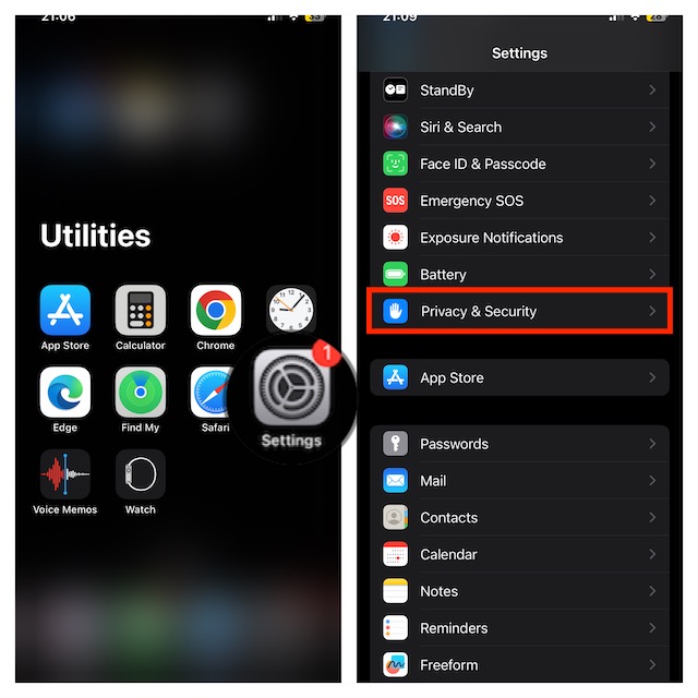 - Μετά από αυτό, πατήστε για την ιδιωτική ζωή και την ασφάλεια.
