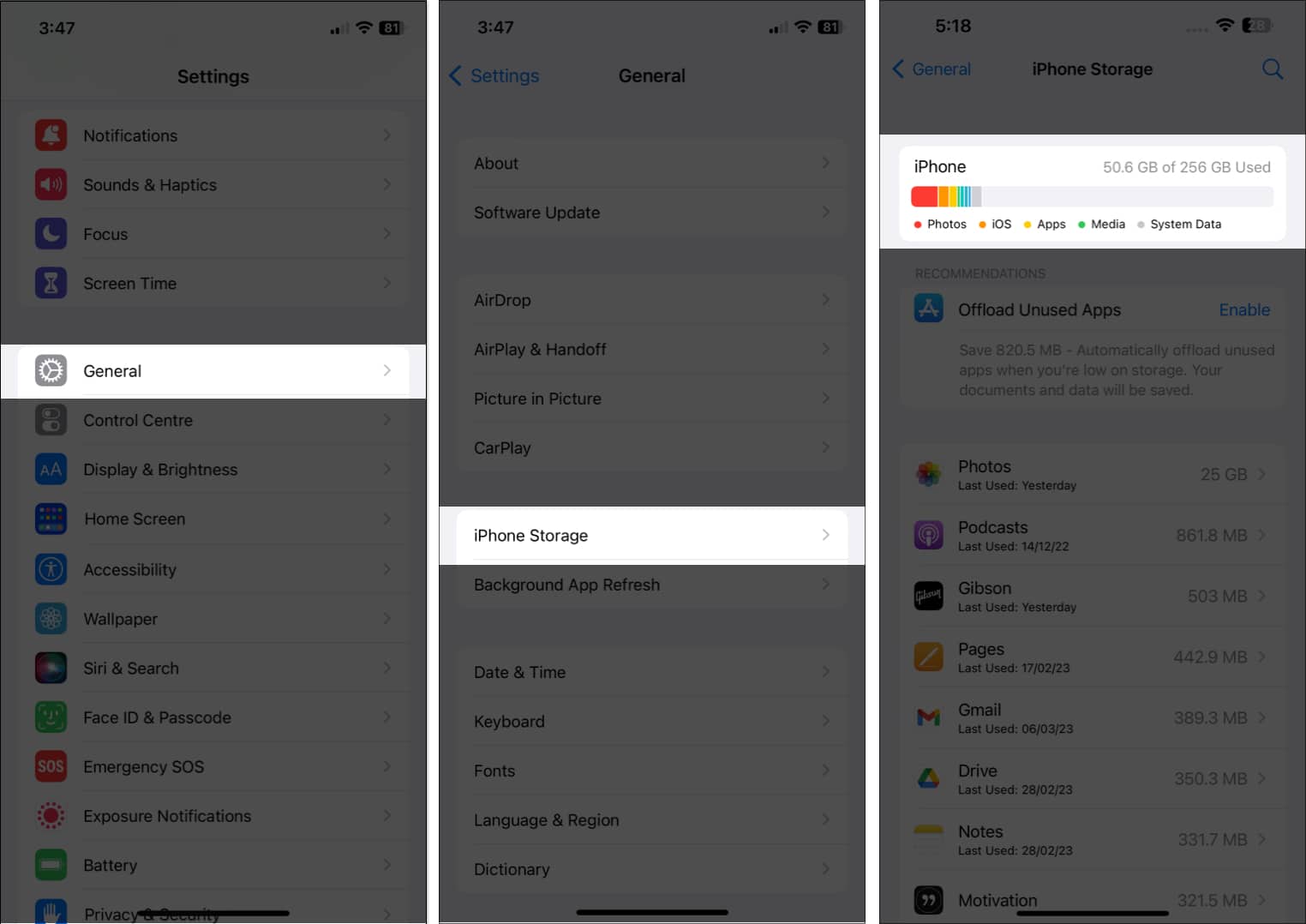 Για να ελέγξετε την αποθήκευση σας, μεταβείτε στοΡυθμίσεις→Γενικός→αποθήκευση iPhone.