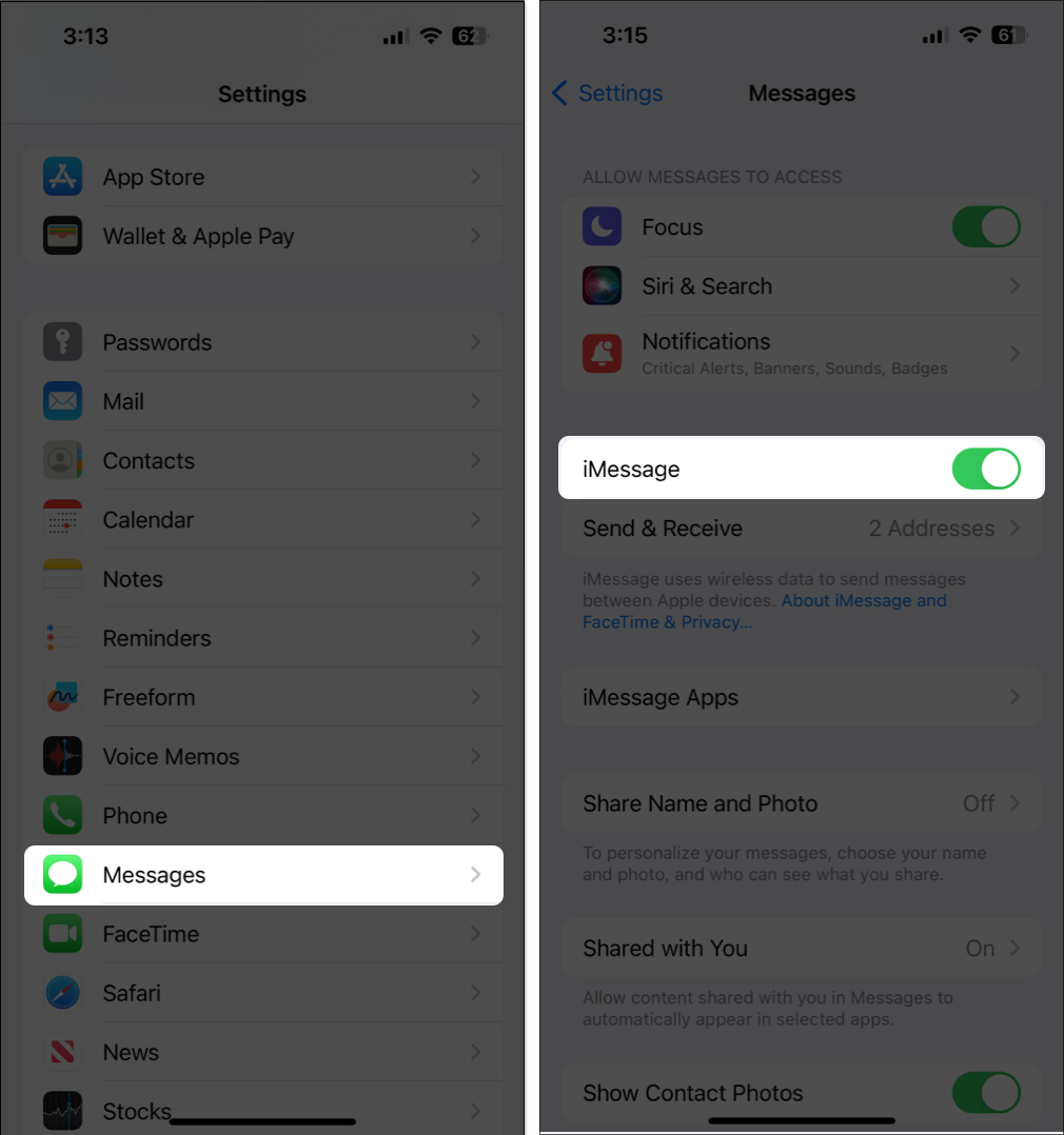 1. Βεβαιωθείτε ότι το imessage είναι ενεργοποιημένο