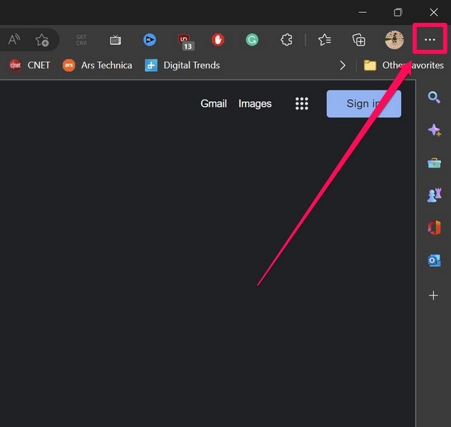 1.Εναλλακτικά, μπορείτεΞεκινήστε την εφαρμογή Microsoft Edgeστη συσκευή των Windows 11 καιΚάντε κλικ στο κουμπί τριών σημείωνΣτο επάνω δεξιά.