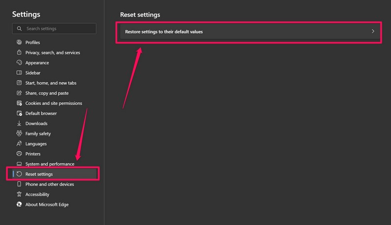 4. Επαναφορά ρυθμίσεων Microsoft Edge σε προεπιλογή στα Windows 11