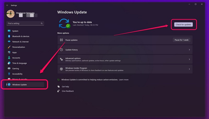 Έτσι, για να ελέγξετε για τις τελευταίες διαθέσιμες ενημερώσεις για τα Windows 11 και να τα εγκαταστήσετε στον υπολογιστή ή το φορητό υπολογιστή σας, ακολουθήστε τα βήματα δεξιά: