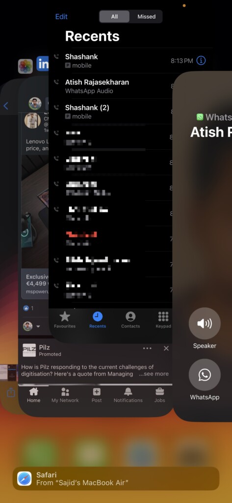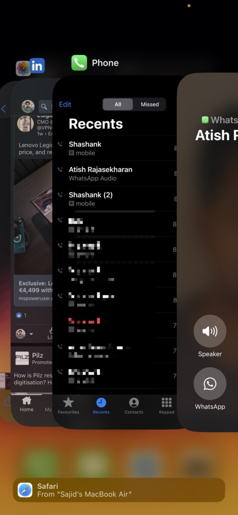 3.Σύρετε επάνω στοΤηλέφωνοΕφαρμογή από το μενού Recents για να το κλείσετε.