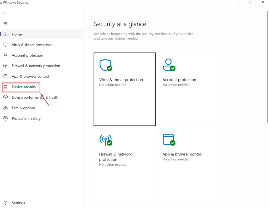 Βήμα 2 -Από τα αριστερά,Κάντε κλικ στην ασφάλεια συσκευής.