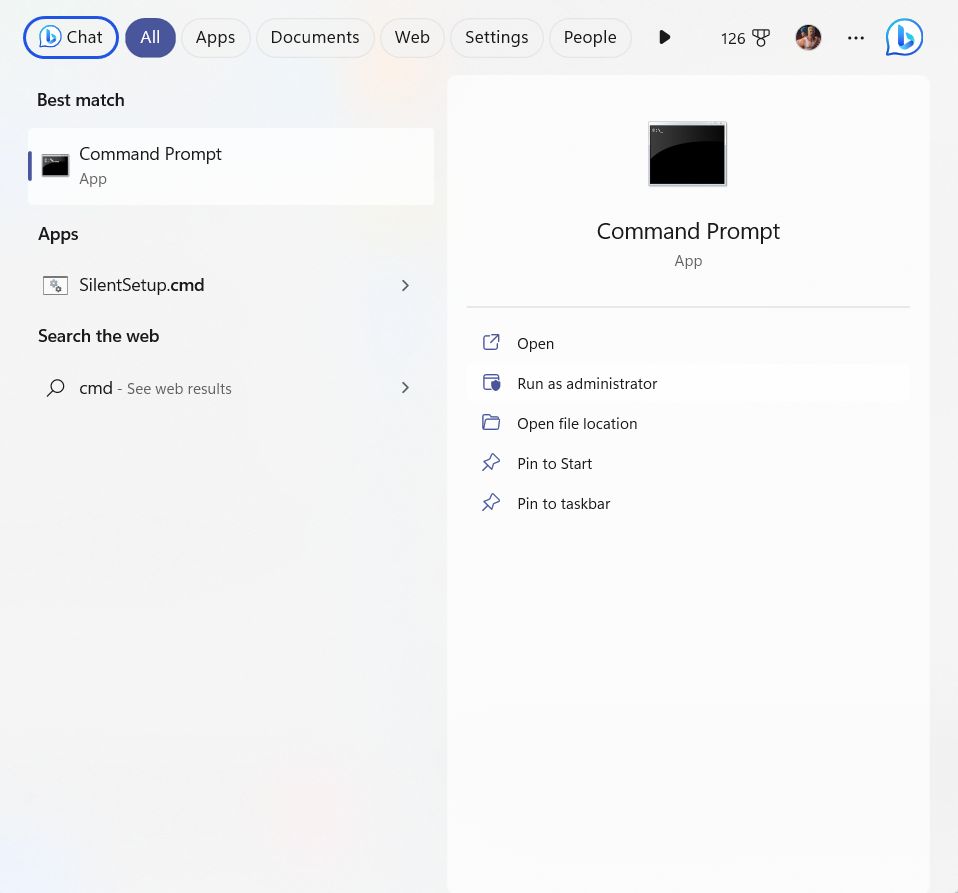 Βήμα 1 -Στη γραμμή αναζήτησης των Windows, πληκτρολογήστεCMDκαι κάντε κλικ στο κουμπίΕκτελέστε ως διαχειριστήςαπό τη δεξιά πλευρά.