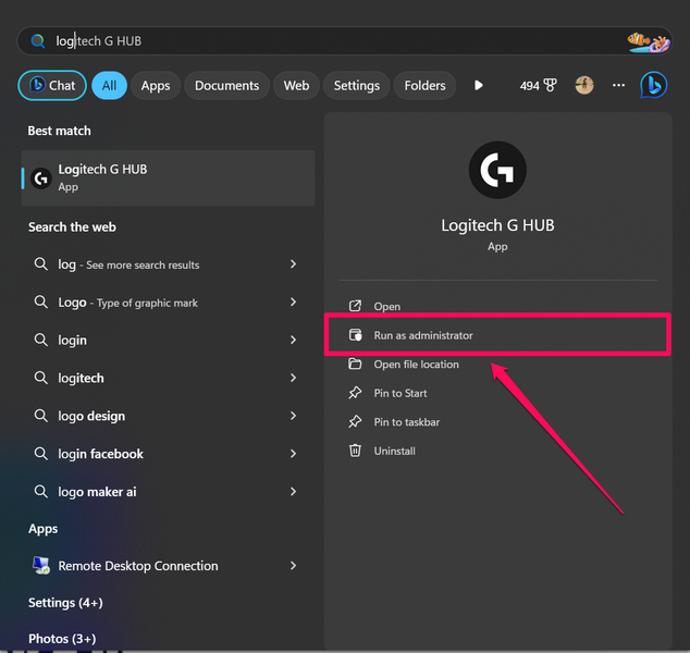 3. Δοκιμάστε να εκτελέσετε το Logitech G Hub ως διαχειριστής στα Windows 11