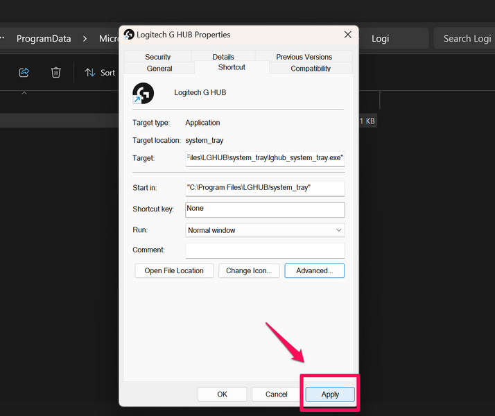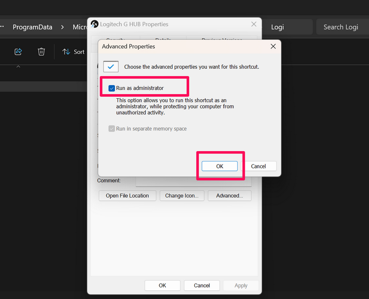 Διαμορφώστε το Logitech G Hub για να εκτελεστεί ως διαχειριστής στα Windows 11