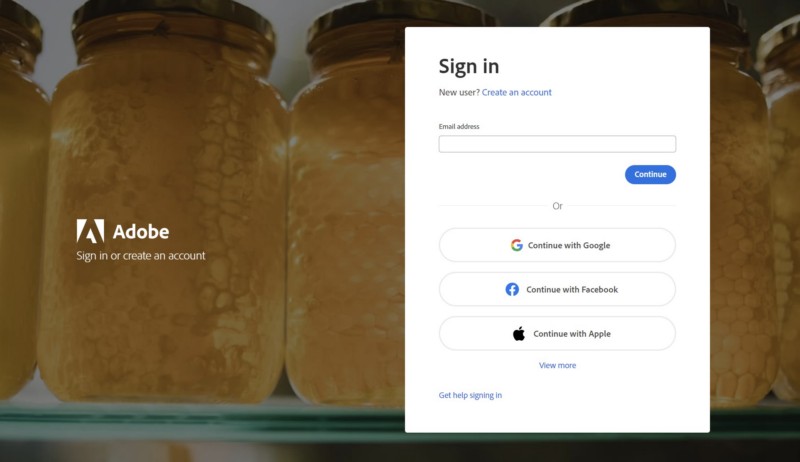 3.Χρησιμοποιήστε το email σας, το λογαριασμό Google, το λογαριασμό Facebook ή το λογαριασμό της AppleΣυνδεθείτε στον λογαριασμό σας Adobe.
