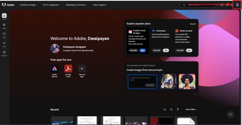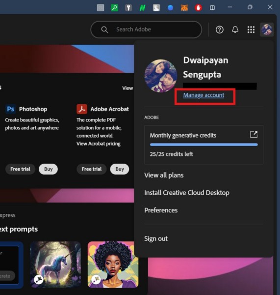 Σημείωμα:Βεβαιωθείτε ότι έχετε συνδεθεί στον ίδιο λογαριασμό Adobe στον οποίο συνδέονται όλες οι εφαρμογές σας στο Windows 11 PC ή το φορητό υπολογιστή σας.