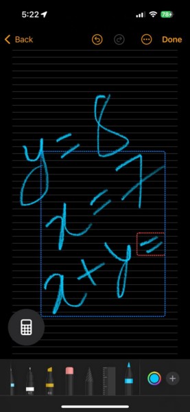 Ως αποτέλεσμα,Η εφαρμογή αριθμομηχανής ή η εφαρμογή σημειώσεων στο iPhone σας ενδέχεται να μην είναι σε θέση να ανιχνεύσει χειρόγραφους αριθμούς, μεταβλητούς χαρακτήρες και μαθηματικά σύμβολαΌταν χρησιμοποιείτε τη λειτουργία Maths Notes.