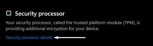 2.ΣτοΑσφάλεια συσκευώνΕνότητα, κάντε κλικ στο κουμπίΛεπτομέρειες επεξεργαστή ασφαλείαςγια να μετακομίσετε σε αυτό το τμήμα.