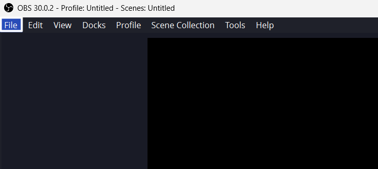 1.Για να ελέγξετε το ίδιο στις ρυθμίσεις ήχου του OBS, ανοίξτε το πρόγραμμα και κάντε κλικ στο κουμπίΑρχείοστην κορυφή.