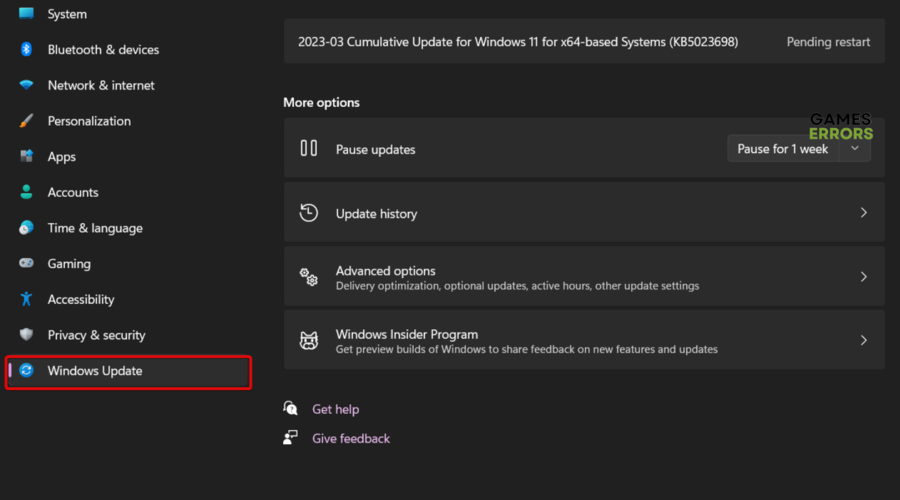 1.Να το κάνετε αυτό, ανοίξτε τοΡυθμίσειςΤμήμα στον υπολογιστή σας Windows 11 και προχωρήστε στοΕνημέρωση των Windowsαπό το αριστερό μενού.