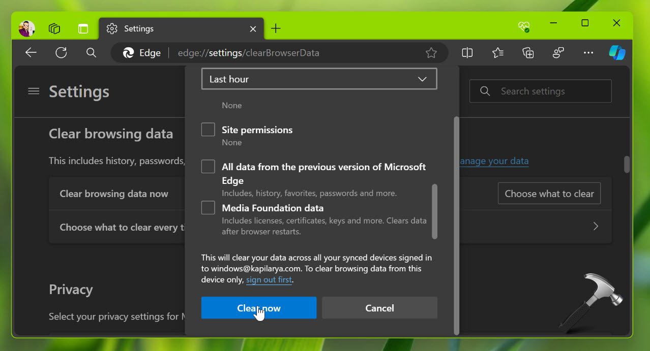 Διορθώστε 3: Καθαρίστε τα δεδομένα ιστότοπου