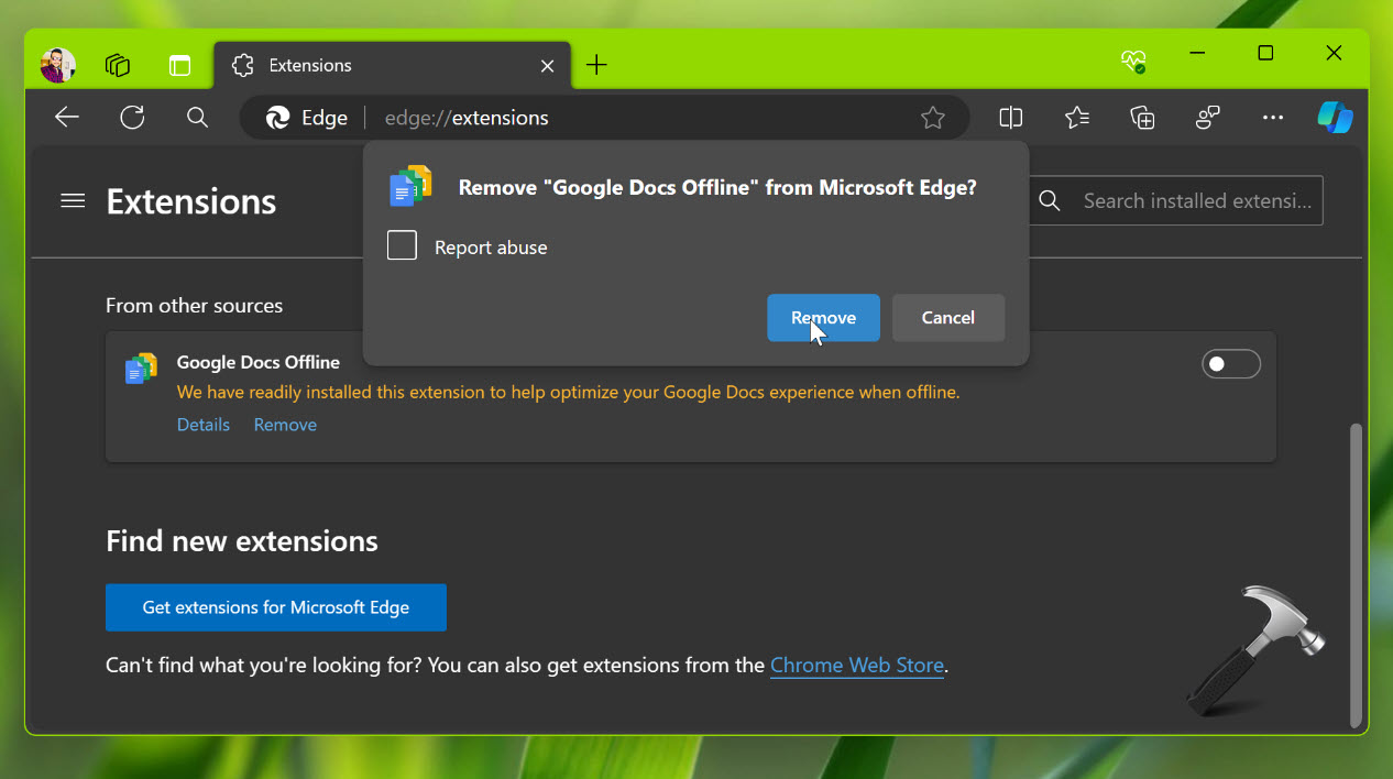 Στη σελίδα επεκτάσεων, αφαιρέστε τις επεκτάσεις που δεν χρησιμοποιείτε ή αυτές που προέρχονται από τρίτους και υποψιάζεστε ότι θα μπορούσαν να προκαλέσουν το πρόβλημα, ώστε να αφαιρέσετε την επέκταση τρίτου μέρους μπορεί να σας βοηθήσει να επιλύσετε αυτό το πρόβλημα.