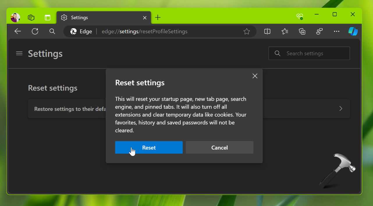 Στο Popup επιβεβαίωση κάντε κλικ στο Reset και σε λίγες στιγμές θα επαναφέρονται οι ρυθμίσεις της Microsoft Edge.