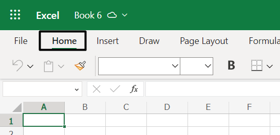 1.Ανοίγω τοΕφαρμογή Microsoft Excelστο σύστημά σας και κάντε κλικ στοΣπίτιΣτο επάνω μενού πλοήγησης.