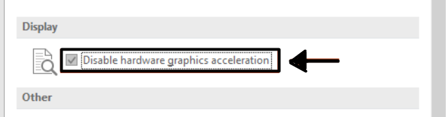3.ΣτοΠροχωρημένοςκαρτέλα, αποσυνδέστε τοΑπενεργοποιήστε την επιτάχυνση γραφικών υλικούκάτω από το πλαίσιοΕπίδειξη.