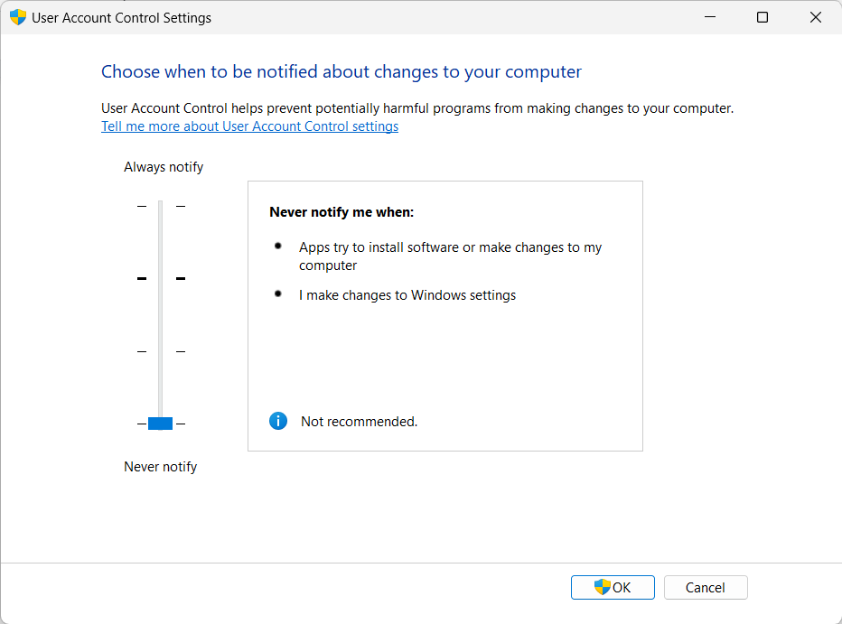 12. Απενεργοποιήστε τον έλεγχο λογαριασμού χρήστη (UAC)