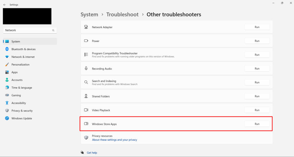 Μπορείτε επίσης να χρησιμοποιήσετε το εργαλείο αντιμετώπισης προβλημάτων των εφαρμογών Windows Store για να διορθώσετε το πρόβλημα με την εφαρμογή Microsoft Store. Ακολουθήστε τα παρακάτω βήματα για να εκτελέσετε το εργαλείο αντιμετώπισης προβλημάτων των εφαρμογών Windows Store.