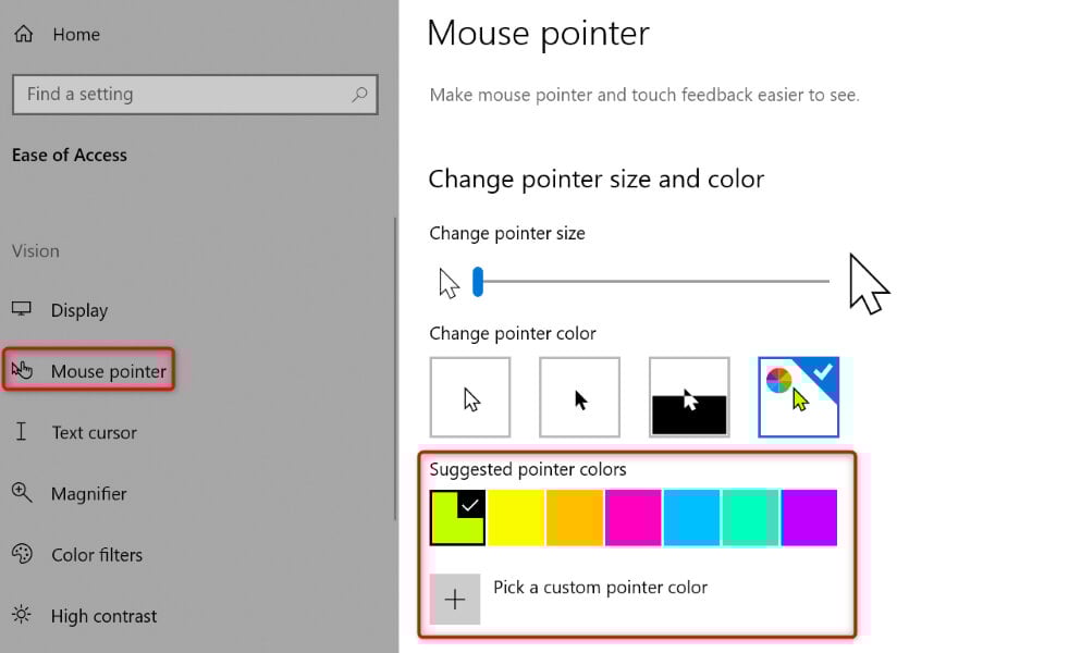 - ΕπιλέγωΜαύρος,Ανεστραμμένος, ήΕθιμοστο δεξιό παράθυρο. Εάν επιλέξετεΕθιμο, επιλέξτε το προσαρμοσμένο χρώμα για τον δρομέα σας.