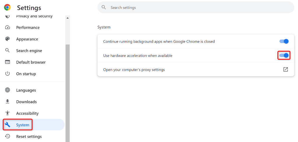 - Απενεργοποιήστε τοΧρησιμοποιήστε την επιτάχυνση υλικού όταν είναι διαθέσιμηεπιλογή.