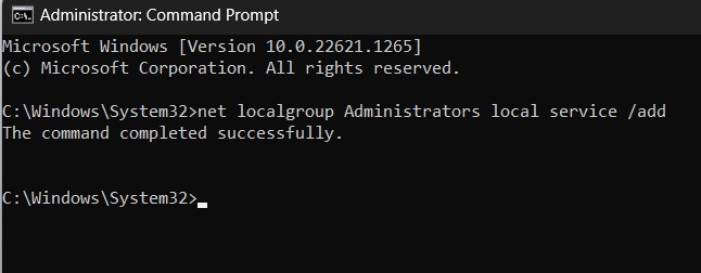 2.Γράψτε την ακόλουθη εντολή και πατήστε το πλήκτρο Enter για να το εκτελέσετε. Εάν η εντολή εκτελεστεί με επιτυχία, ο τρέχων χρήστης θα λάβει άδεια διαχειριστή.
