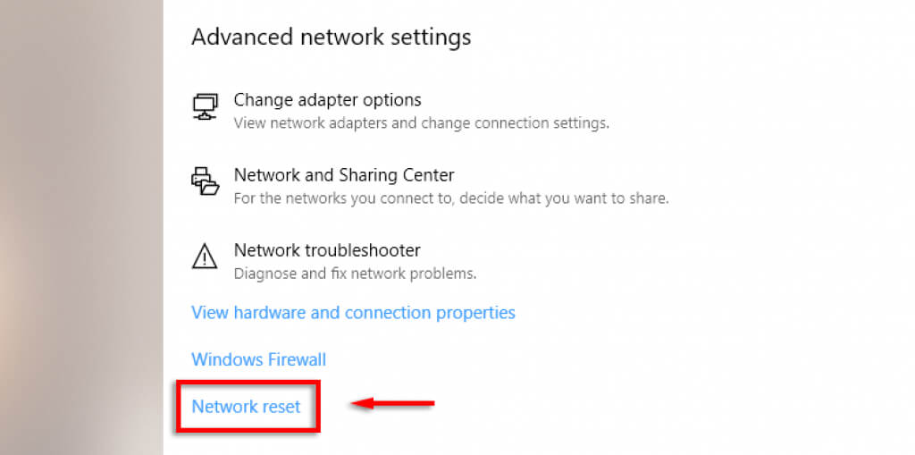 - Επαναφέρετε τις ρυθμίσεις του δικτύου σας.Εάν έχετε αλλάξει πρόσφατα οποιαδήποτε από τις ρυθμίσεις δικτύου σας (όπως ο ρύθμιση ενός προσαρμοσμένου DNS), αυτό μπορεί να είναι φταίξιμο για τον κωδικό σφάλματος UI3012. Μπορείτε να επιστρέψετε σε προεπιλεγμένες ρυθμίσεις σύνδεσης μέσω του μενού Ρυθμίσεις του δρομολογητή σας ή μέσω των ρυθμίσεων των Windows. Να το κάνετε αυτό, ανοίξτεΡυθμίσεις των Windows>Δίκτυο και Διαδίκτυο>Επαναφορά δικτύου.