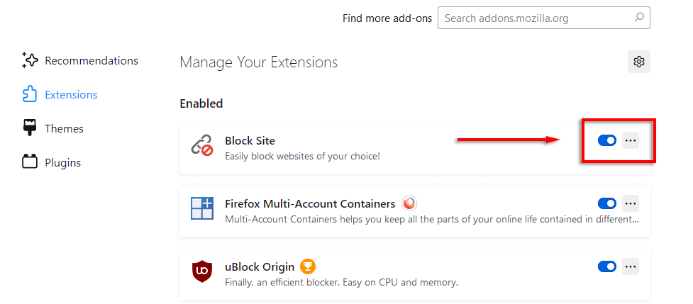 Ένα άλλο πράγμα που μπορεί να προκαλέσει προβλήματα με το Netflix είναι οι επεκτάσεις ή τα πρόσθετα του προγράμματος περιήγησης. Μπορείτε να ελέγξετε αν αυτό είναι το πρόβλημα με την απενεργοποίηση όλων των πρόσθετων σας, στη συνέχεια, επαναφέροντάς τους ένα προς ένα καθώς προσπαθείτε να φορτώσετε το Netflix.