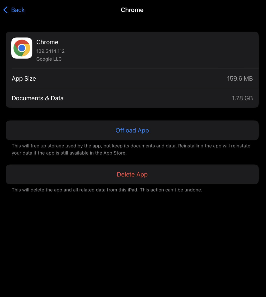 Βήμα 3: Στην επόμενη οθόνη για το Chrome, πατήστε στο κουμπί εκφόρτισης. Αυτό θα εκφορτώσει την εφαρμογή Chrome διατηρώντας παράλληλα τα δεδομένα και τα έγγραφά σας.