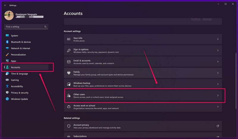 Βλέπετε, μικρά ζητήματα με τον τρέχοντα λογαριασμό της Microsoft που χρησιμοποιείτε αυτήν τη στιγμή για να συνδεθείτε στα Windows ενδέχεται να προκαλέσουν εφαρμογές συστήματος όπως το NotePad σε δυσλειτουργία. Έτσι, για να δημιουργήσετε έναν τοπικό λογαριασμό χρήστη στα Windows 11, ακολουθήστε τα βήματα παρακάτω:
