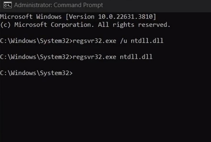 regsvr32.exe /u ntdll.dllregsvr32.exe ntdll.dllΣημείωμα:Βεβαιωθείτε ότι έχετε εκτελέσει τις παραπάνω εντολές ξεχωριστά και με την ίδια σειρά με όπως αναφέρθηκε παραπάνω. Μην τα τρέχετε ταυτόχρονα.