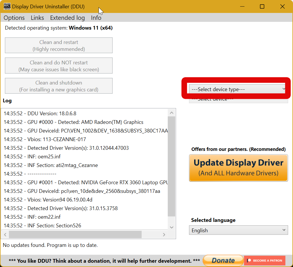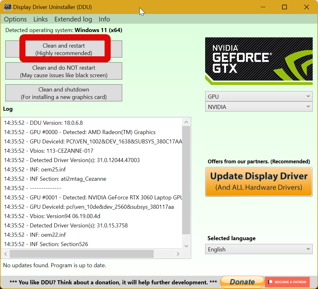 11. Αφαιρέστε τους οδηγούς χρησιμοποιώντας DDU και εγκαταστήστε τα προγράμματα οδήγησης GeForce από το μηδέν