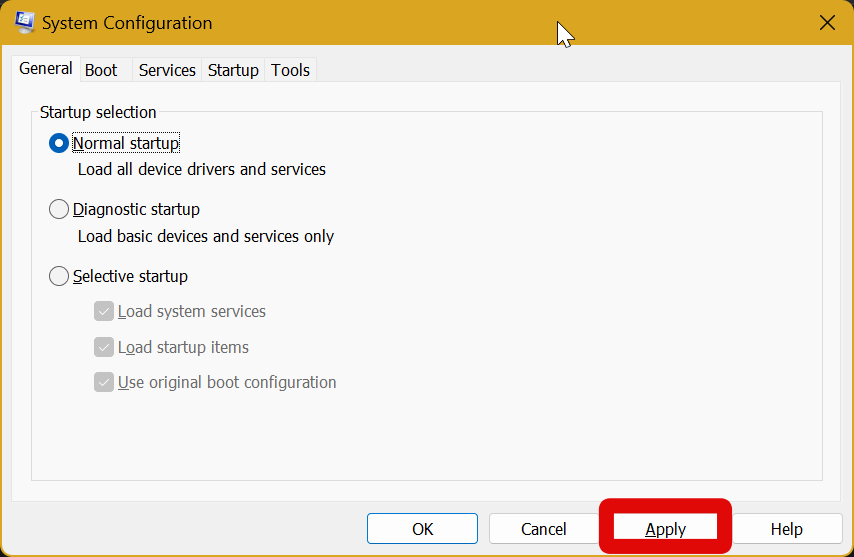 20.ΕπιλέγωΚανονική εκκίνησηκάνοντας κλικ σε αυτό.