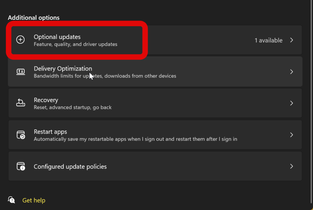 6.Στη συνέχεια, κάντε κλικ στο κουμπίΠροαιρετικές ενημερώσεις, που θα εμφανιστεί κάτωΠρόσθετες επιλογές.