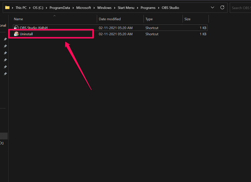 Εάν η ενημέρωση της εφαρμογής του OBS Studio δεν διορθώνει το ζήτημα της μαύρης οθόνης ή το obs studio που δεν εργάστηκε στα Windows 11, δοκιμάστε να επανεγκαταστήσετε την εφαρμογή στη συσκευή σας. Ακολουθήστε τα βήματα παρακάτω για να κάνετε ακριβώς αυτό: