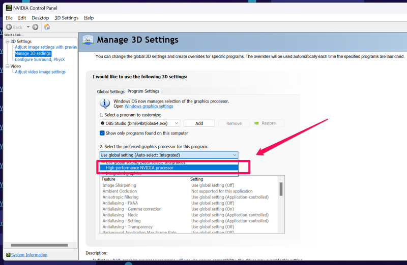 8. Χρησιμοποιήστε τη σωστή κάρτα γραφικών για να εκτελέσετε το Obs Studio στα Windows 11