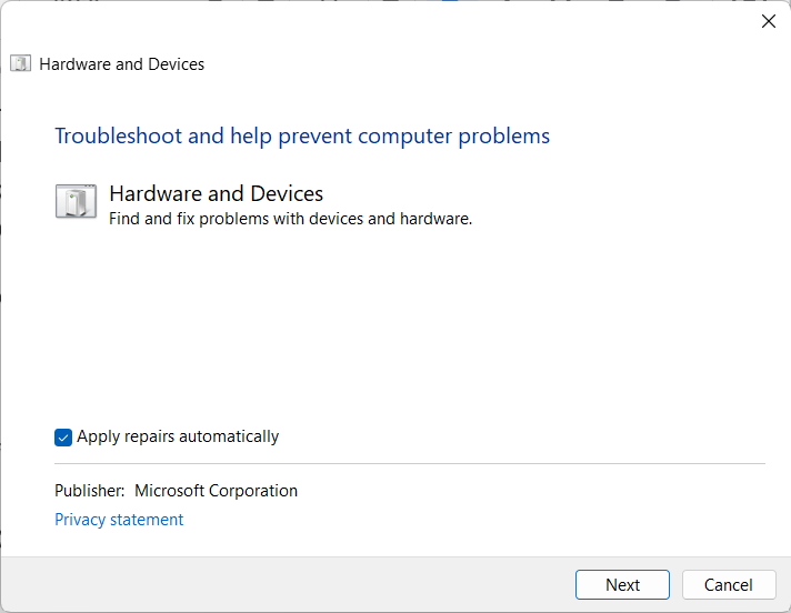 6. Εκτελέστε το Windows Hardware Αντιμετώπιση προβλημάτων